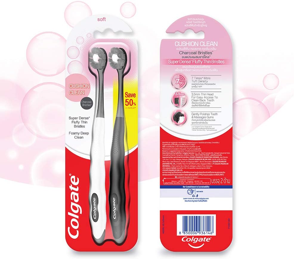 - Dentist-recommended Colgate Cushion Clean toothbrush line.