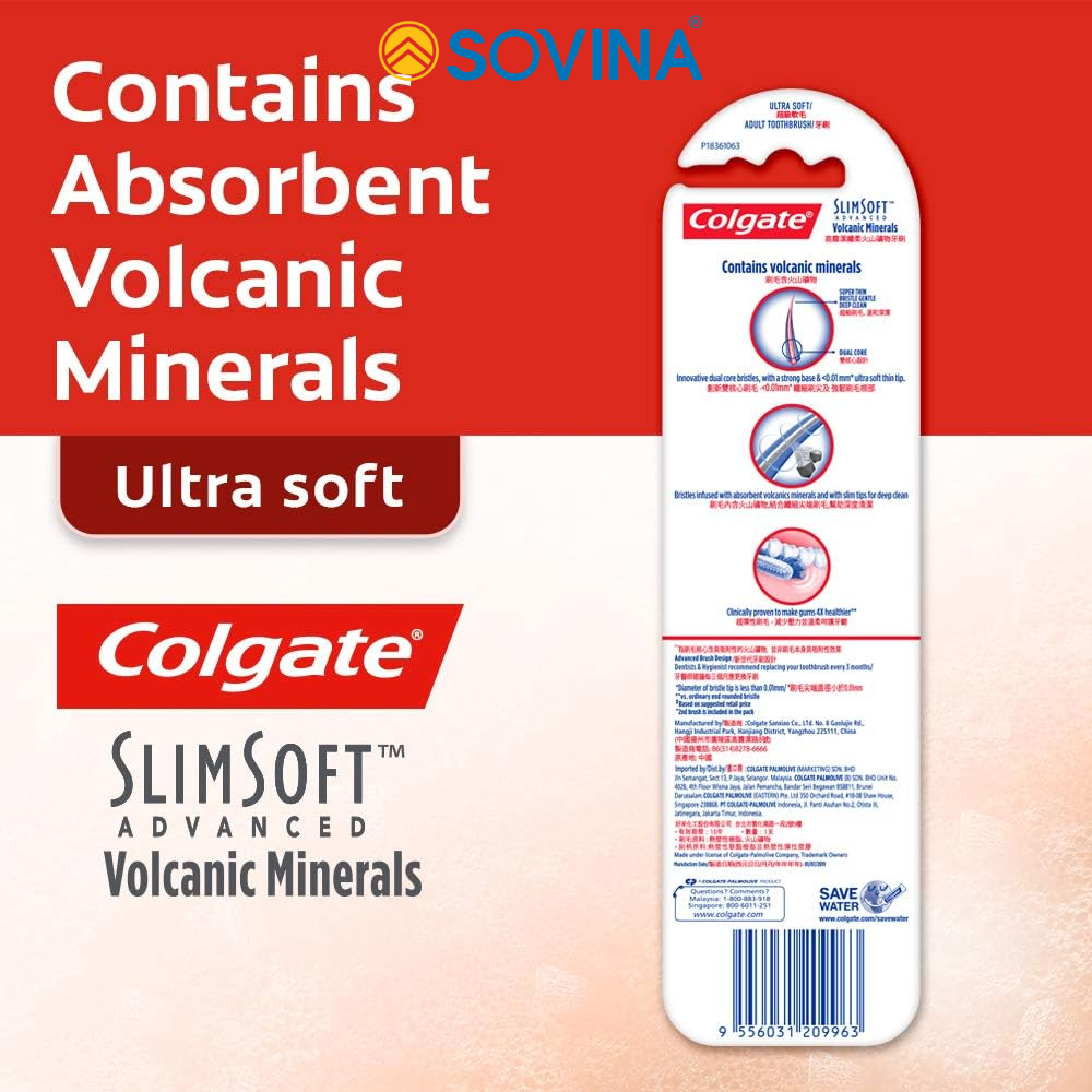 - The Colgate Slimsoft Advanced Toothbrush (Pack of 2) uses new dual-core bristle technology with a firm bristle base and ultra-soft, fine bristle tips.