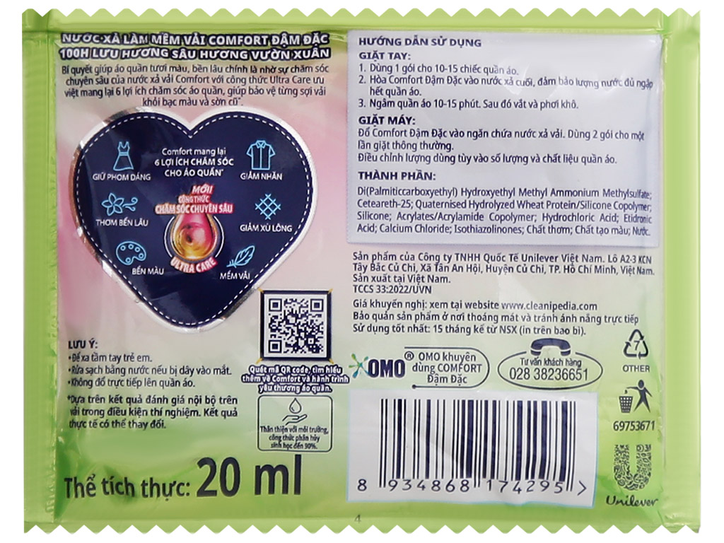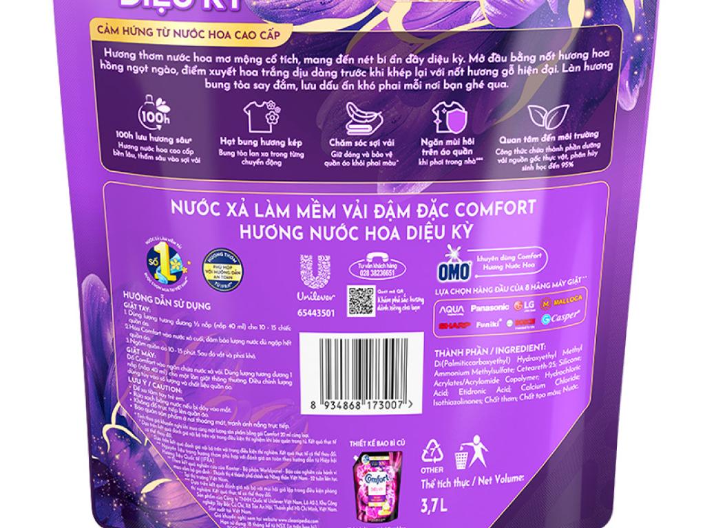 - Fabric softener with the new Ultra Care formula keeps clothes fresh and prevents fading.
