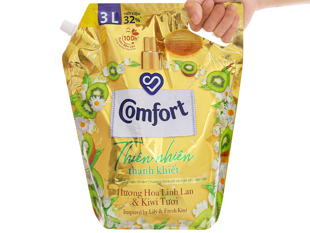 A natural fragrance inspired by fresh, gentle Lily of the Valley and Kiwi 100% natural essential oils, premium floral and fruity scents. Long-lasting fragrance on clothes for up to 100 hours. Superior fabric softener formula from Comfort.