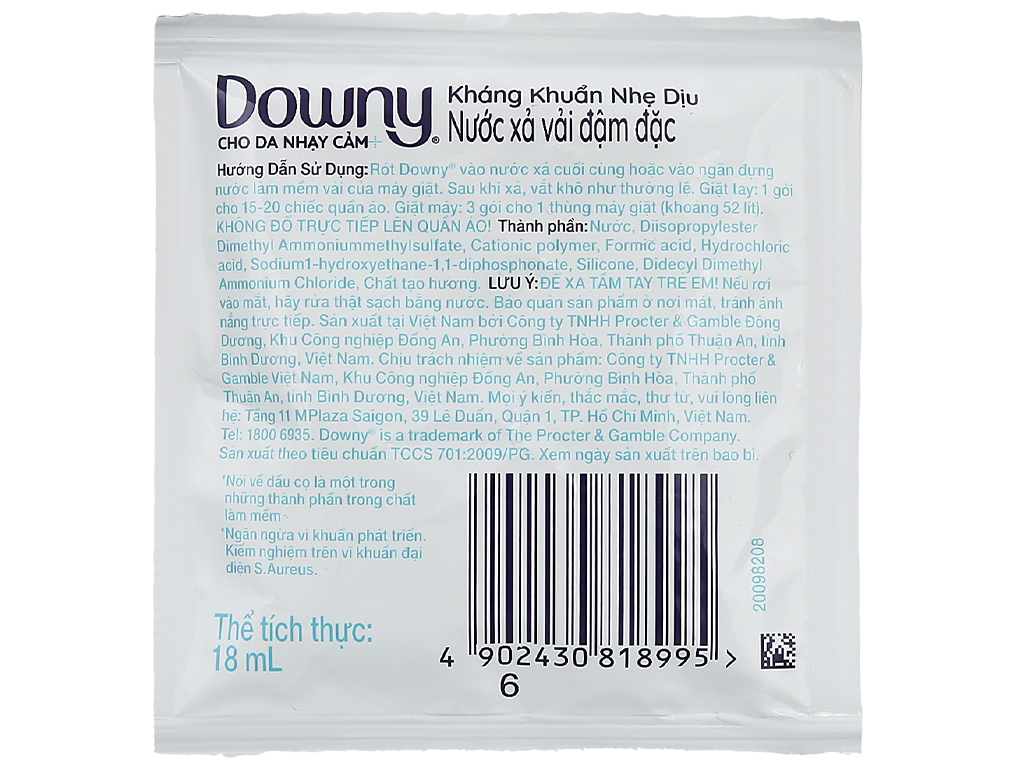 Water, Diisopropylester Dimethyl Ammoniummethylsulfate, Cationic polymer, Formic acid, Hydrochloric acid, Sodium1-hydroxyethane-1, 1-diphosphonate, Silicone, Didecyl Dimethyl Ammonium Chloride, Fragrance.