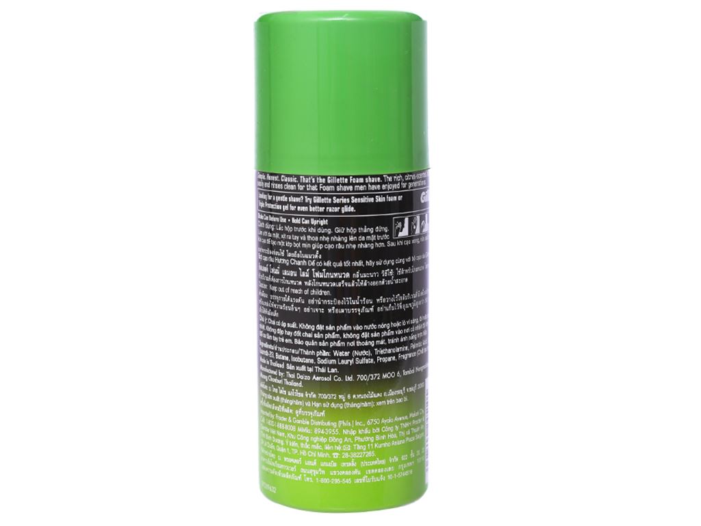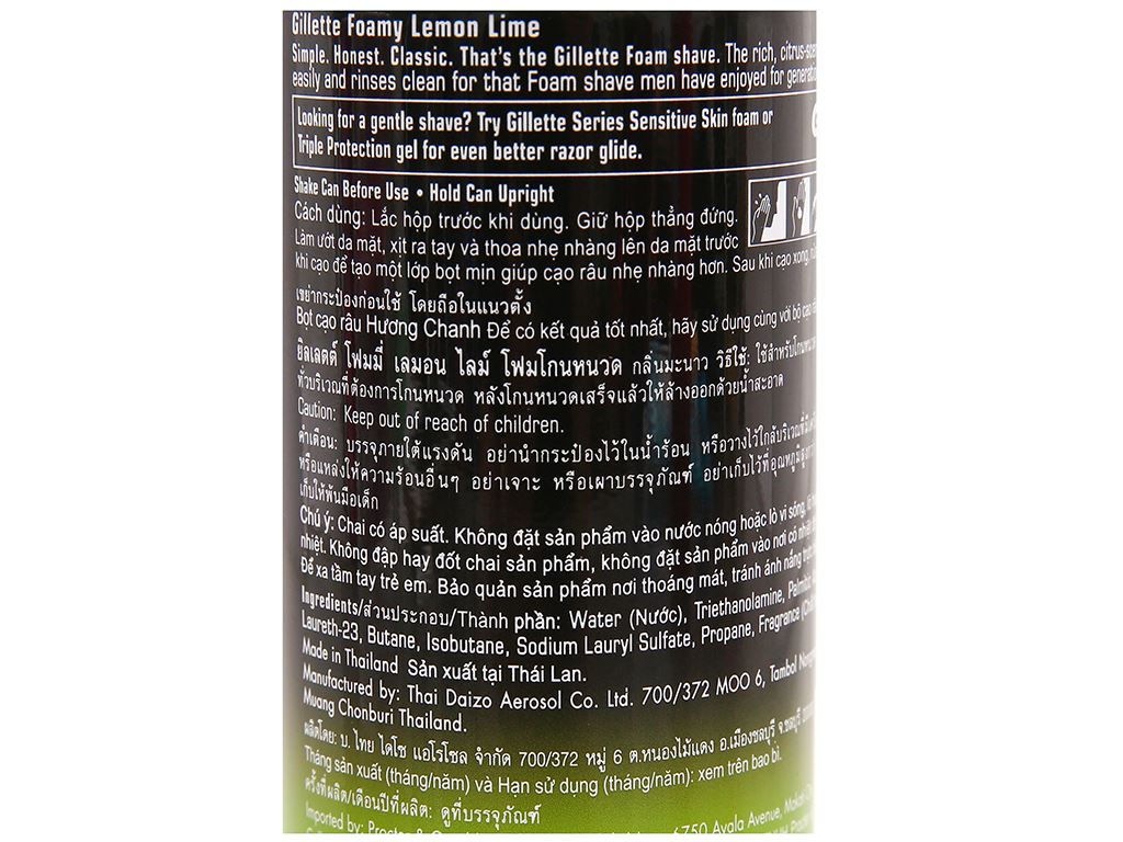Water, Triethanolamine, Palmitic Acid, Stearic Acid, Laureth-23, Butane, Isobutane, Sodium Lauryl Sulfate, Propane, Fragrance (Chất tạo hương), BHT