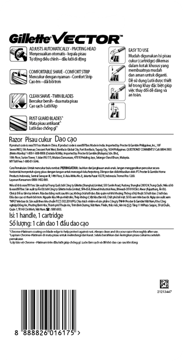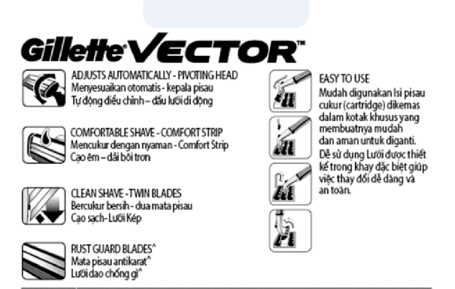 Gillette Razor Vector Razor Blue – 1 pcs/pack, 12 packs/box, 12 boxes/case