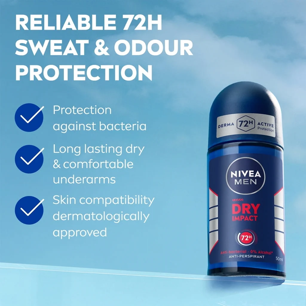 Nivea Men Deodorant Roll-On Dry Impact 72h Dual Protect 25ml x 30 Bottles