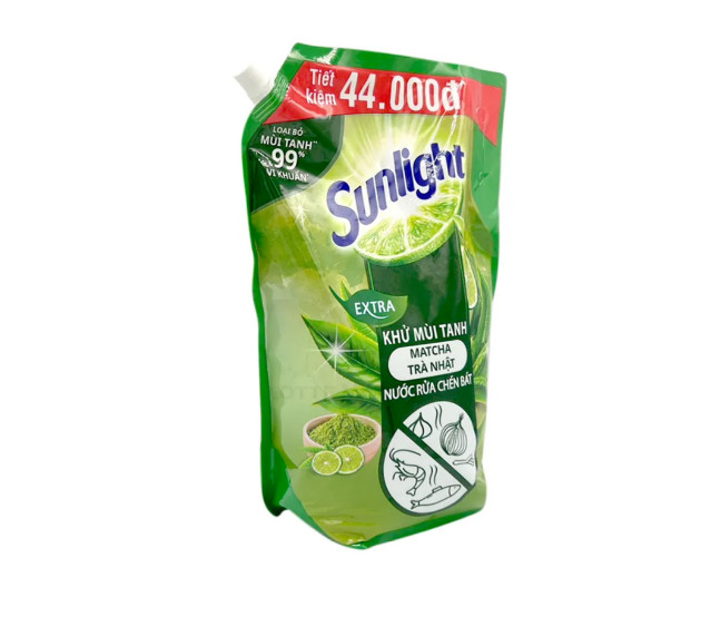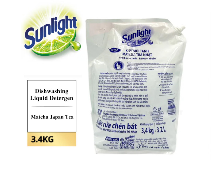 - Sunlight Green Tea Dishwashing Liquid uses natural ingredients, protects hands and gives a safe, gentle feeling.