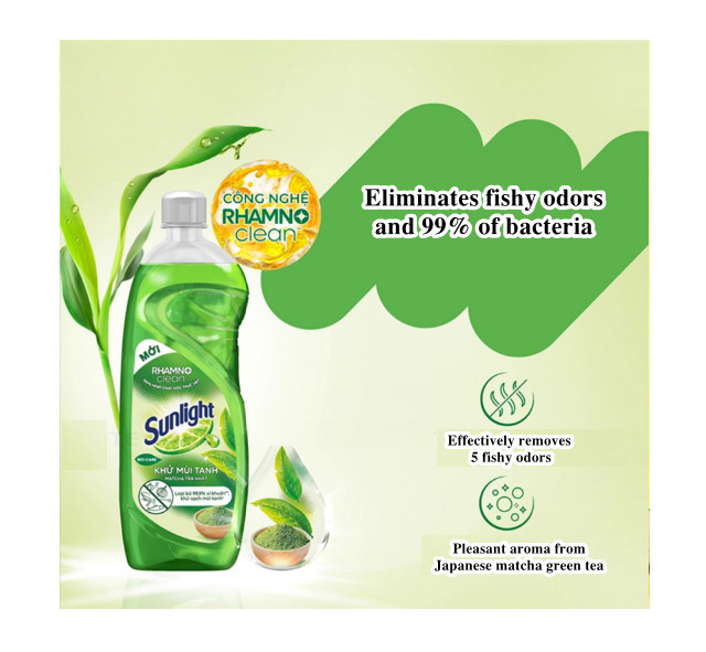 - Sunlight Green Tea Dishwashing Liquid uses natural ingredients, protects hands and gives a safe, gentle feeling.