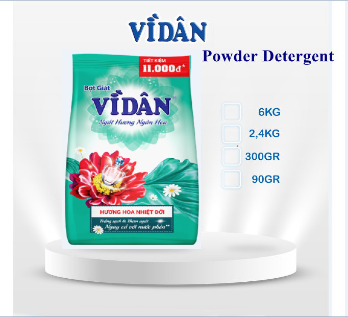 - With a fragrance extracted from natural flowers, Vì Dân Robot 5-Star Premium Detergent helps clothes stay fresh-smelling even on rainy days.